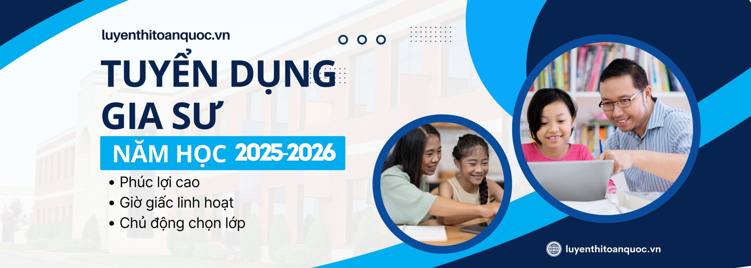 Trung tâm Luyện thi Toàn Quốc chuyên cung cấp đội ngũ gia sư giỏi dạy kèm tại nhà uy tín TPHCM. Được thành lập năm 2010 với 15000 Giáo Viên, Sinh Viên, trung tâm gia sư đất việt đang là nơi tìm gia sư Chất Lượng cho quý phụ huynh, là trung tâm gia sư Uy Tín cho giáo viên, sinh viên